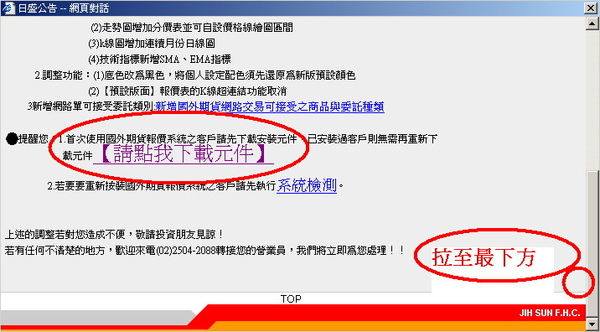 2.日盛公告頁彈出後不要關掉,拉到最下面,選"請點我下載元件"