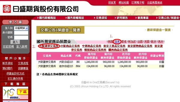 1.進入日盛期貨網站選擇國外期權商品>保證金一覽表