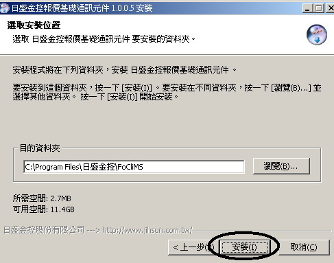 7.裝在日盛的資料夾中,通常若您裝在預設資料夾即可直接按"安裝"