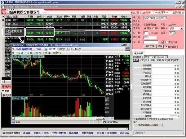 2.在商品名稱點兩下可帶出技術分析(年月日分K線都有),按價格可帶到右邊下單匣