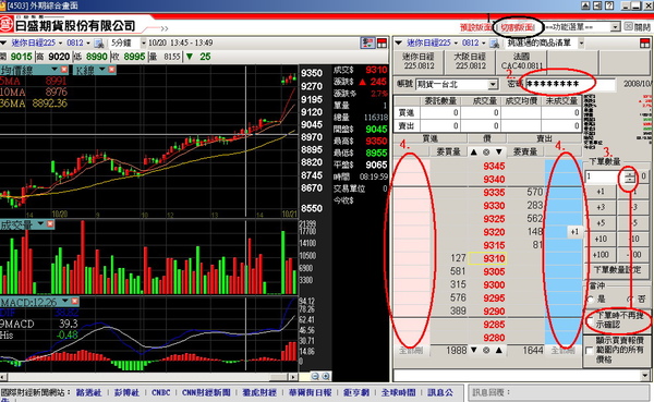 4.外期點擊快速下單介面:請按切割版面>密碼>每次下單數量>紅色區為買,藍色區為賣